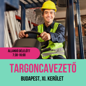 Stabil, hosszú távú munkalehetőséget kínálunk targoncavezető pozícióban! Munkaidő: Feladatok: Elvárások: Amit kínálunk: Ha szereted a pörgős, mégis kiszámítható munkát, és van tapasztalatod targoncázásban, várjuk jelentkezésed!